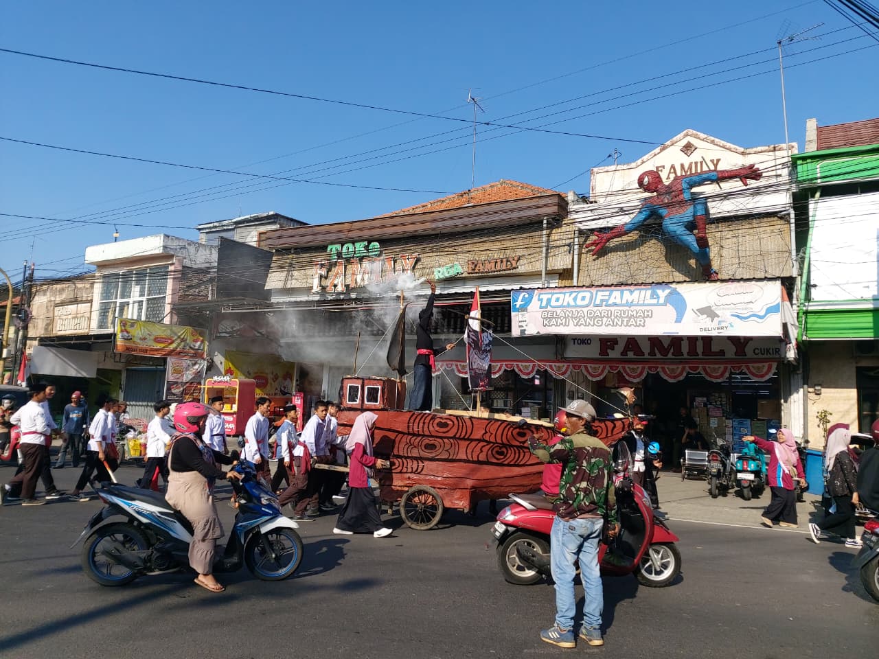 Pawai karnaval ini tidak hanya menjadi hiburan bagi warga sekolah, tetapi juga menarik perhatian masyarakat sekitar yang berjejer di sepanjang jalan untuk menyaksikan dan mengabadikan momen ceria ini.