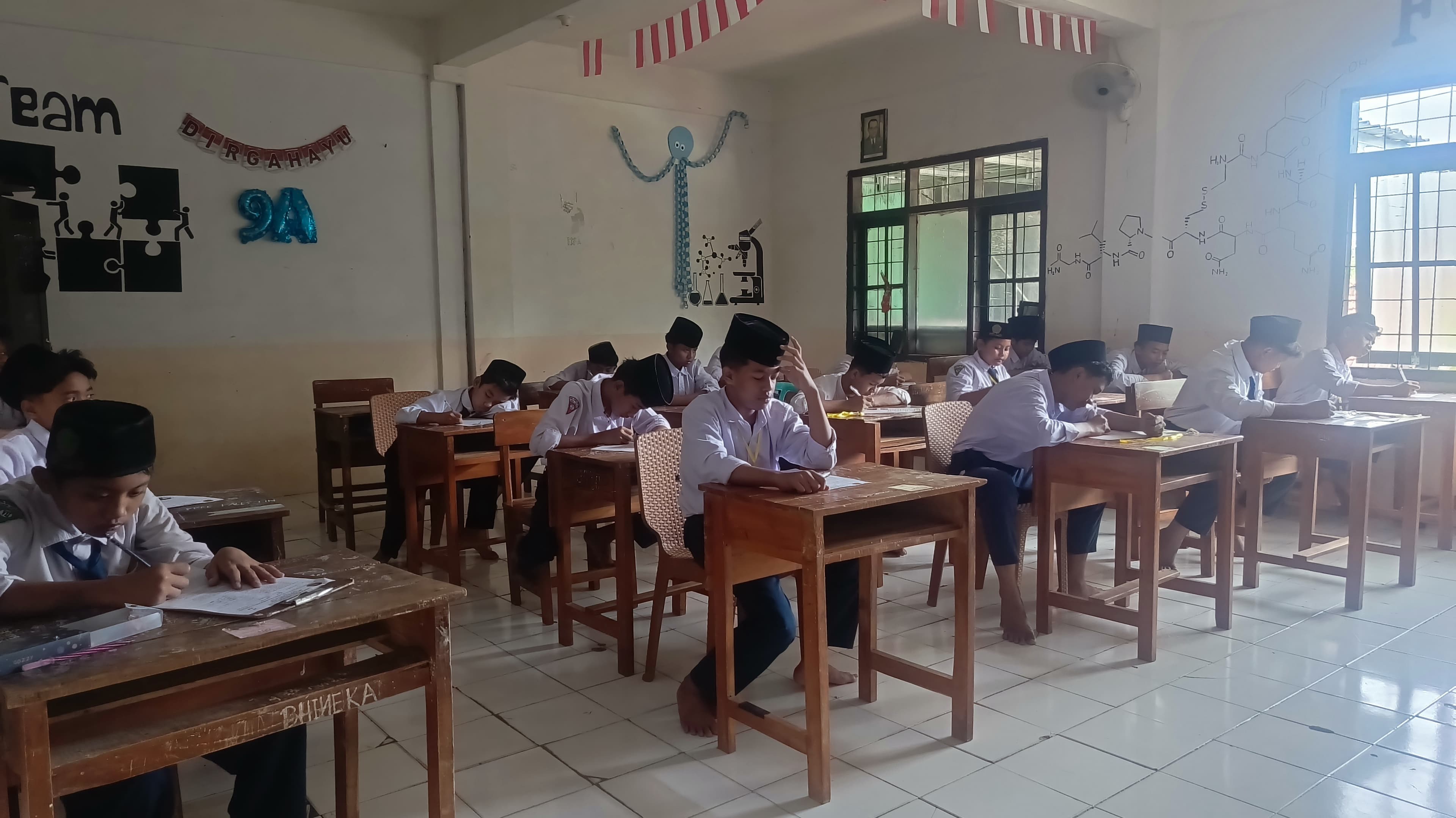Para siswa terlihat serius dalam mengerjakan soal, dengan persiapan belajar yang telah dilakukan sebelumnya, baik melalui bimbingan guru maupun belajar mandiri.